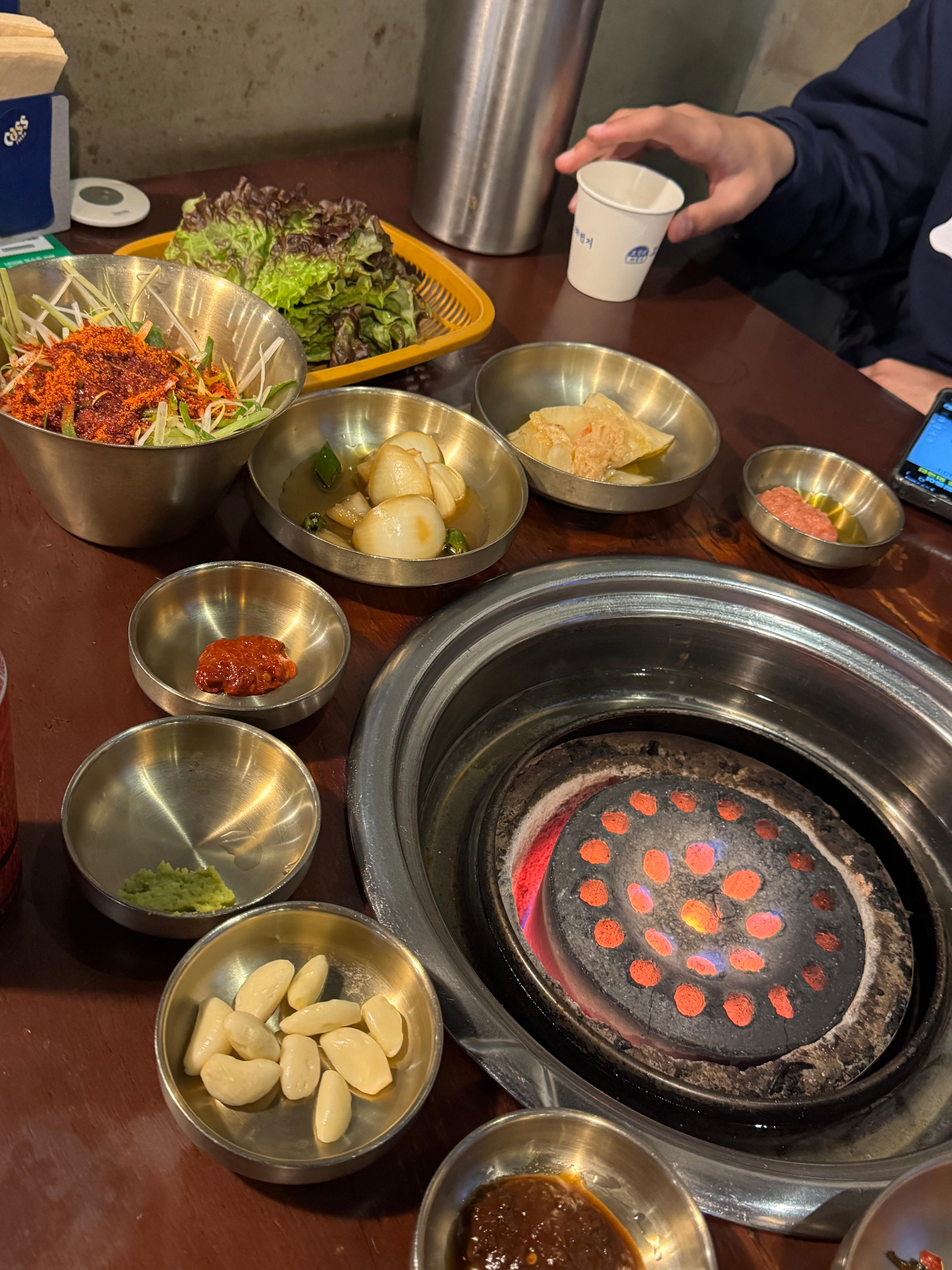 이날 기본으로 고깃리 모둠B를 시켰구요, 추가로 돼지껍데기를 시켰어요.