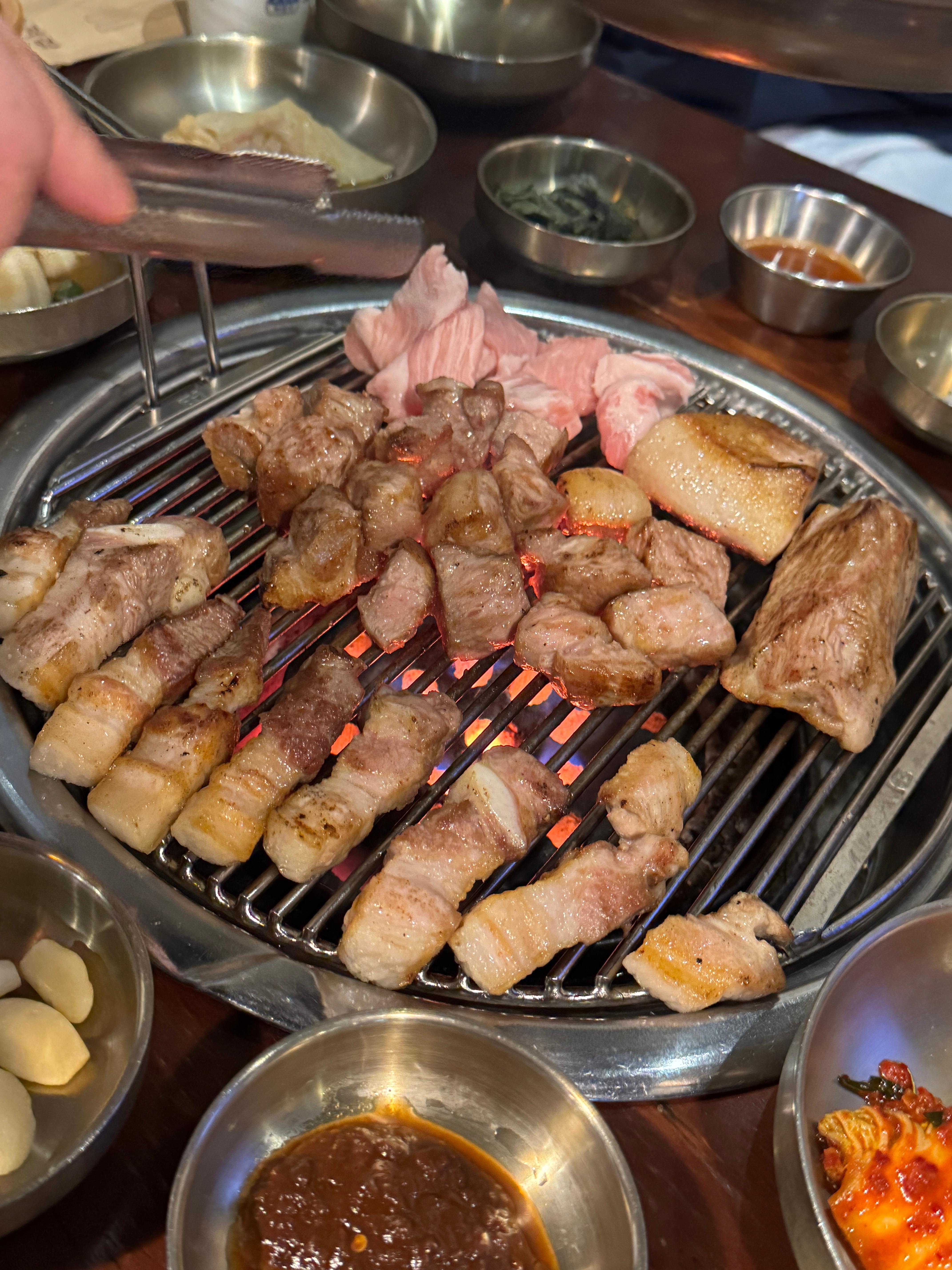 고기집에서 잡내 없이 고소한 냄세가 확 올라와요.